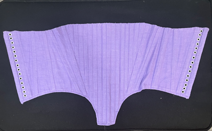 I patterned, cut, and constructed these lilac stays, made with linen and plastic boning.
